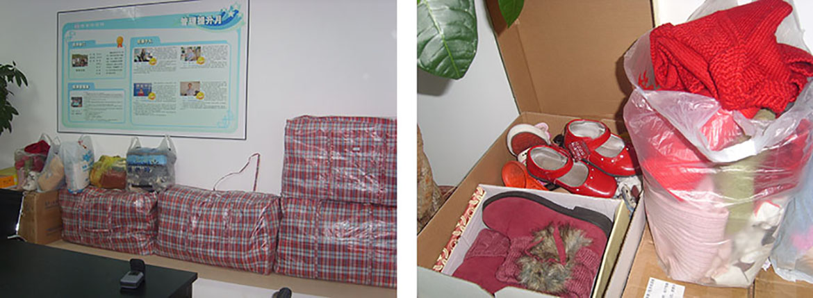今年我们将继续发扬爱心,由公司工会组织了“衣旧温暖”的募捐活动。本次活动开展了近两周的时间,此次募集到的衣服、裤子、裙子、帽子、围巾、鞋子等共计218件。活动通知一出,咱们的员工第二天就带了很多的棉袄大衣、棉鞋过来,看到大家的热情和关爱,我要真心地说声谢谢,谢谢大家伸出温暖的双手。我想不仅仅我的心里觉得温暖,当那些人们收到我们寄去的这些东西时,我想他们也会感受到一丝暖意的。