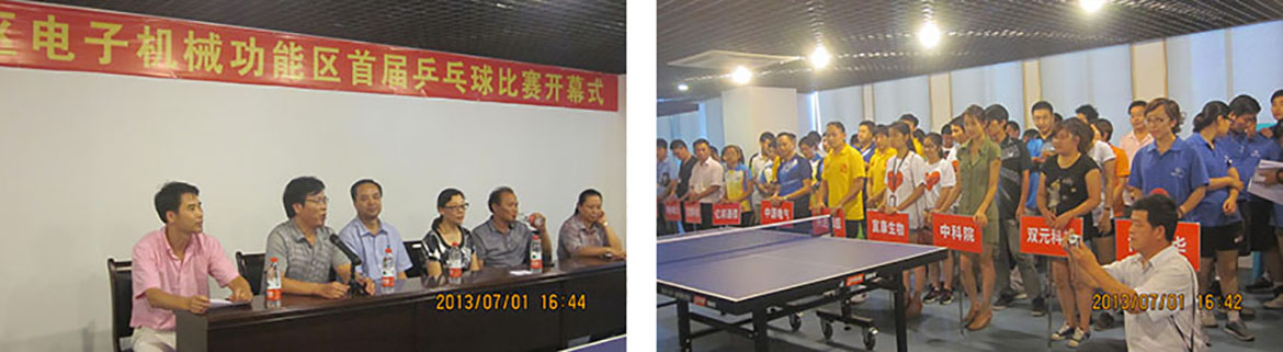 2013年7月1日,上城区电子机械功能区首届乒乓球赛在园区管委会4楼举行。本次共有14支队伍参赛,来自园区的中瑞科技、中源电气、海兴电力、中科院等单位近百名运动员参加了比赛。