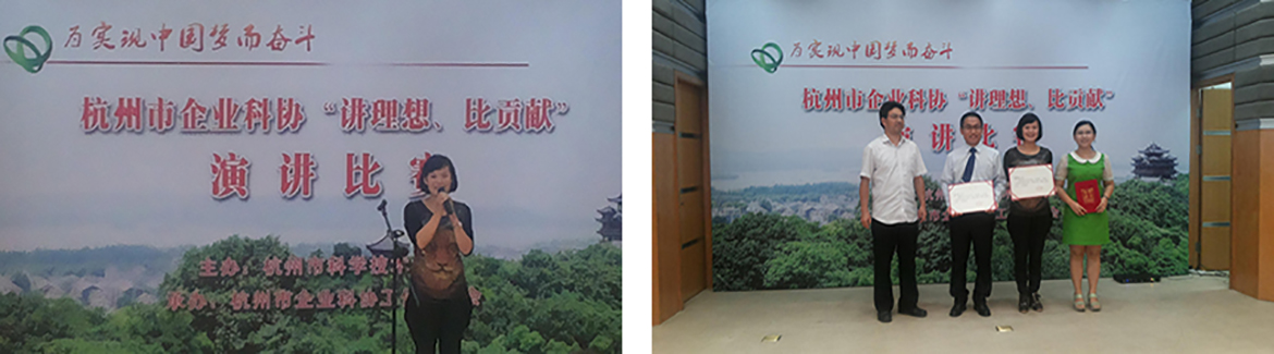 9月23日下午,蓝笑丽代表公司参加了由杭州市科学技术协会组织的“讲理想、比贡献”演讲比赛,并一举获得了二等奖的好成绩,为公司争得了荣誉。